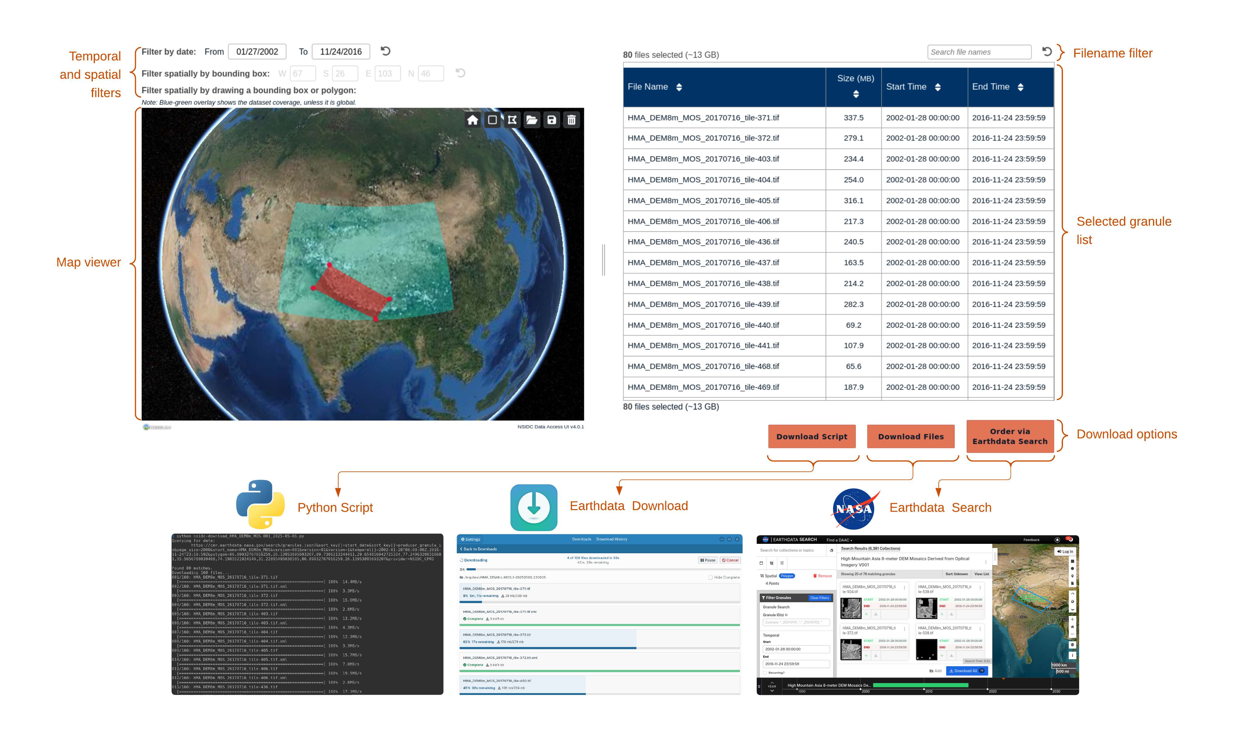 DAT-backend->>Earthdata Download: Send page of data download URLs